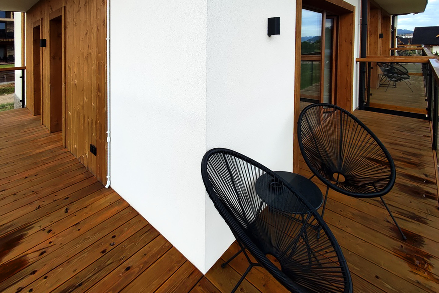 - fotele i stolik kawowy wewnątrz oraz na balkonie